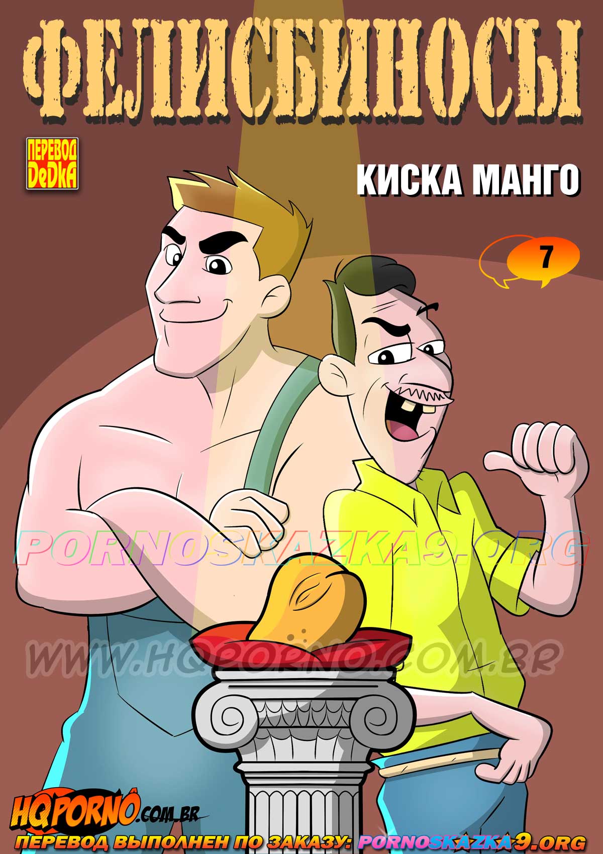 Порно комикс «Фелисбиносы. Часть 7. Киска манго.» Трещина на созревшем манго похожа на киску. На конкурсе «Киска манго» побеждает тот фермер, представитель которого аппетитнее других высосет через такую трещину весь плод выращенный на его плантации. В этом деле нужна тренировка, но на чем тренироваться, если до начала конкурса еще три недели и плоды еще не созрели?